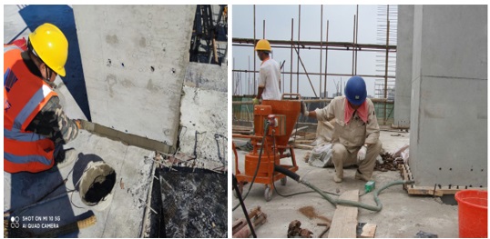 灌漿過程中,除做好旁站監(jiān)管外,還應(yīng)重點(diǎn)管理嵌縫作業(yè)前的清孔、灌漿料的強(qiáng)度、溫度控制;澆筑保持連續(xù)性,澆筑后做好結(jié)構(gòu)養(yǎng)護(hù),24小時(shí)內(nèi)不可受振動(dòng),3天內(nèi)不可受載。