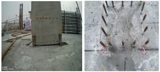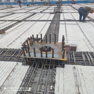 上部主筋未綁扎時(shí)先進(jìn)行板吊裝,就位比較順利