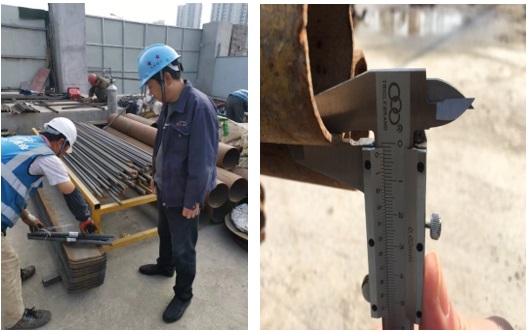 監(jiān)督鋼筋接頭送檢 測量鋼管壁厚